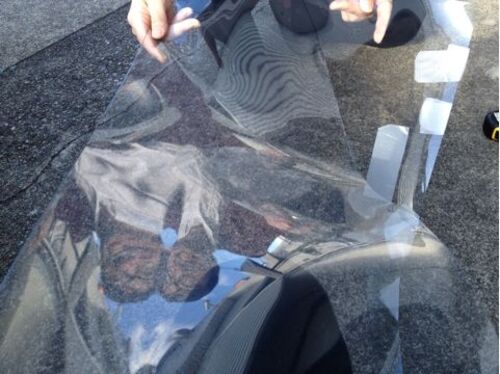 こんばんは。伊藤です。 昨日の車上荒らしでガラスをやられて、やはり年末年始で修理できず、ホームセンターヘ行きDIY。 透明で厚めのテーブルクロスを購入して窓の大きさに合わせてカット。 まずは仮止めして 黒のテープで仕上げ。 ザキ山さんも一安心。 か…